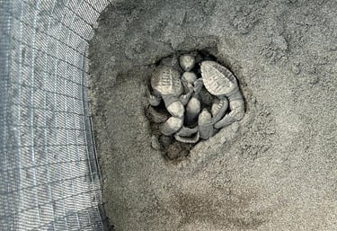 We relocate turtle nests to our hatchery, ensuring a high hatchling success rate.